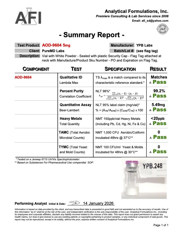AOD 9604 peptide works by targeting molecular pathways involved in lipolysis and fat tissue metabolism without triggering the IGF-1 receptor. It is used to study fat loss, weight loss journey, fat accumulation, metabolic function, metabolism, energy expenditure, and the peptide’s role in peptide treatment and peptide therapy research. Its molecular weight and amino acid sequence are well-characterized, making it suitable for synthetic peptide laboratory applications.