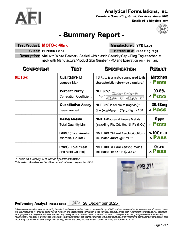 MOTS-c is a 16–amino acid mitochondrial derived peptide encoded within the 12S rRNA region of mitochondrial DNA. Identified within a mitochondrial open reading frame, MOTS-c belongs to a class of mitochondrial derived peptides studied for their involvement in cellular metabolism and adaptive stress signaling. The MOTS c peptide has been examined in laboratory settings for its influence on cell metabolism, metabolic homeostasis, and regulatory signaling pathway activity associated with insulin, glucose, and mitochondrial dynamics. Research indexed on Google Scholar frequently references MOTS-c in studies exploring insulin sensitivity, insulin resistance, glucose uptake, glucose utilization, and broader glucose metabolism mechanisms. Academic publications, including foundational work by Cohen P and Lee C, have evaluated MOTS-c work in experimental systems involving skeletal muscle, mitochondrial signaling, and models of metabolic stress, oxidative stress, and nutrient regulation. All references to these areas are strictly limited to laboratory and experimental research contexts.